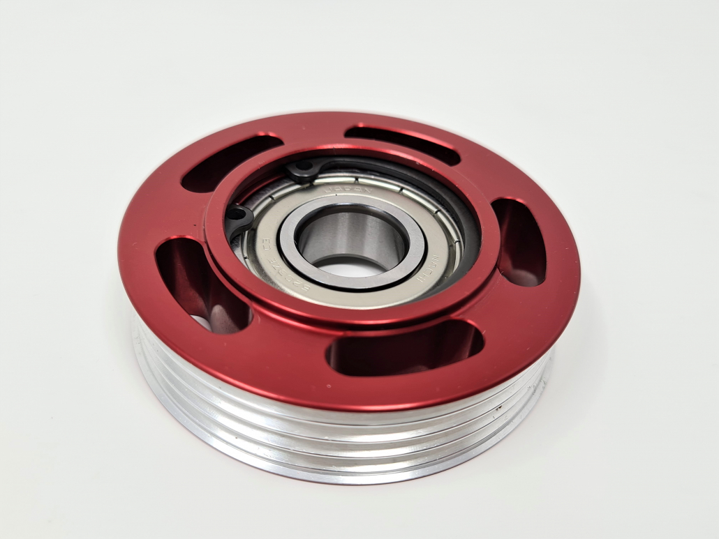 • refined design A.C. idler pulley allows for replacement bearings unlike the OEM version.