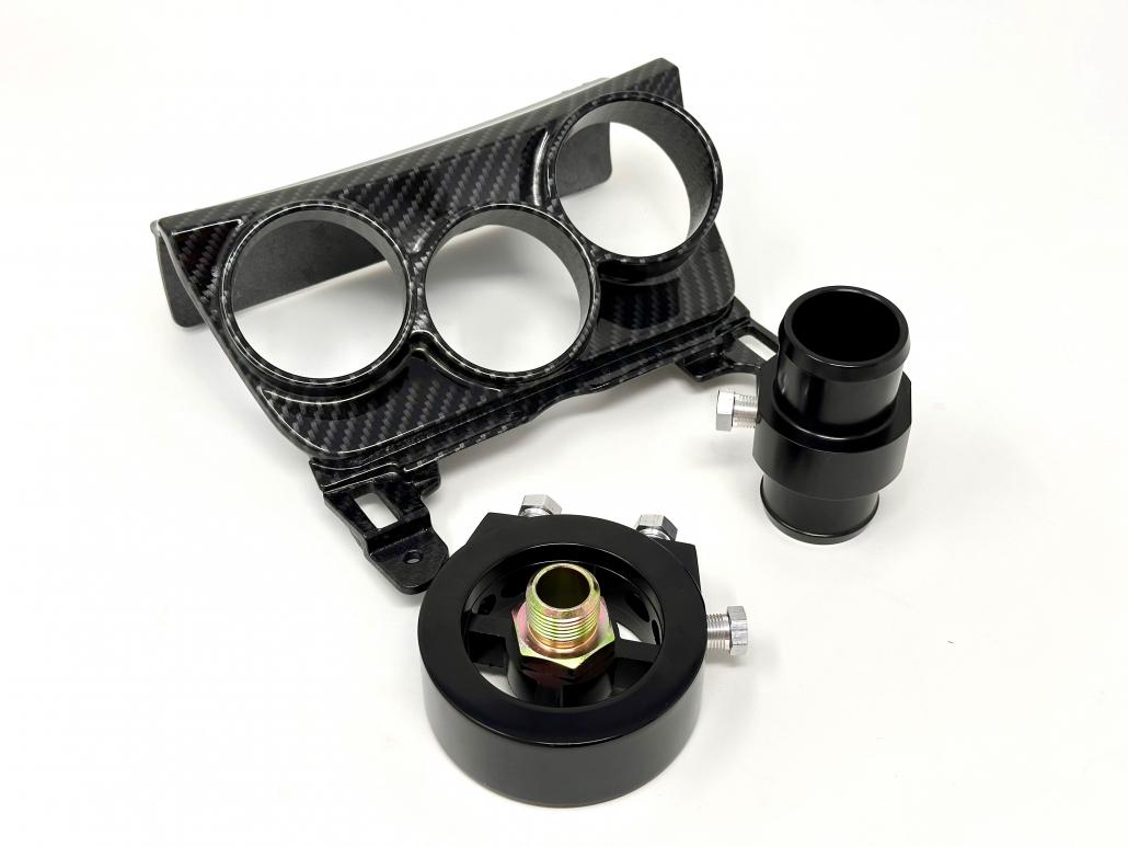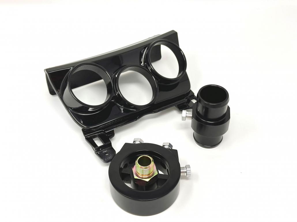 2 Adapters are included within the kit, firstly a very neat sandwich plate adapter designed to be fitted in-between the oil filter and oil filter housing, the allows up to four 1/8NPT fittings, enough for oil pressure and temperature leaving two additional ports for additional requirements such as a Turbo oil feed.
