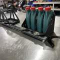 The brace bar is constructed from billet Aluminum 6061 with several mounting positions for the battery case allowing versatility in mounting in either the left, middle or right positions. The brackets are constructed from steel to provide strength.